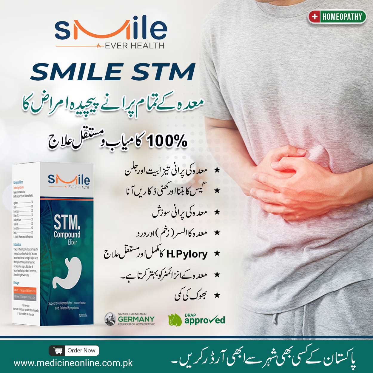 A world-class herbal formula for complete stomach care. Effectively treats acidity, ulcers, gas, infections, and indigestion. Safe with no side effects. Use three times daily. One-month course costs PKR 3300.